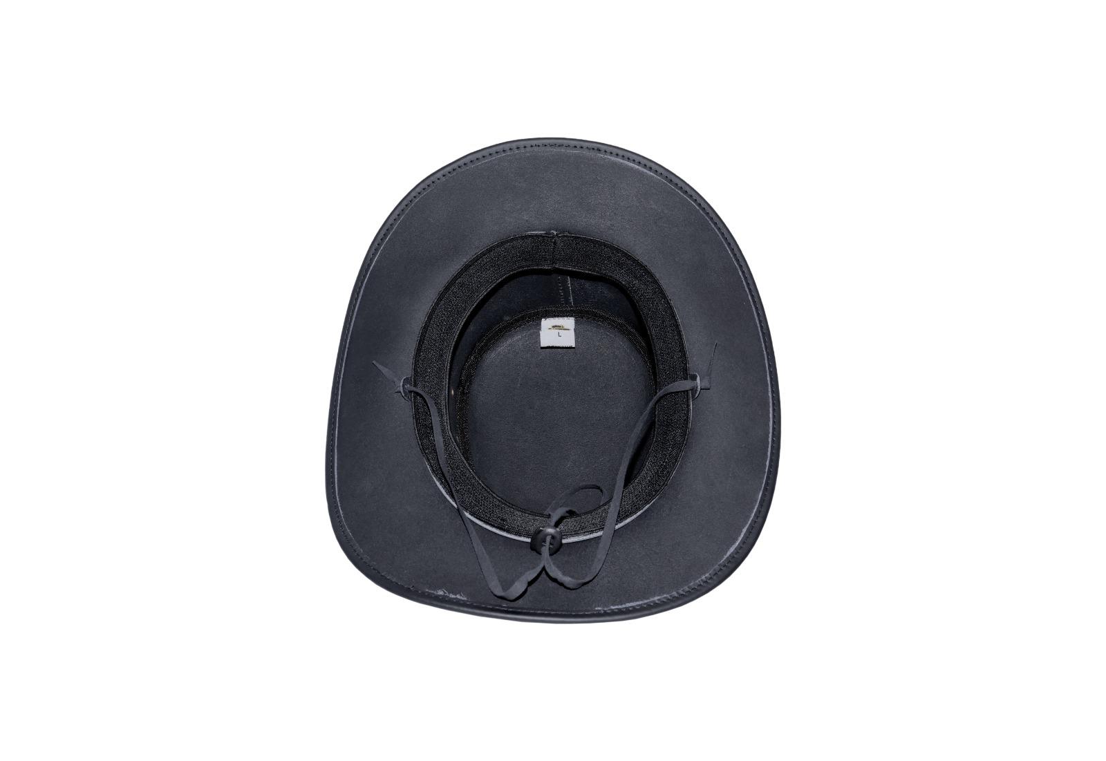Handmade from premium-grade leather, the Black Stallion boasts a smooth, matte finish that gives it a bold yet elegant presence. Its jet-black surface is meticulously shaped to maintain a structured crown and wide brim, offering both durability and protection from the elements. Whether under the blazing sun or on a crisp evening, this hat is built to withstand the test of time.